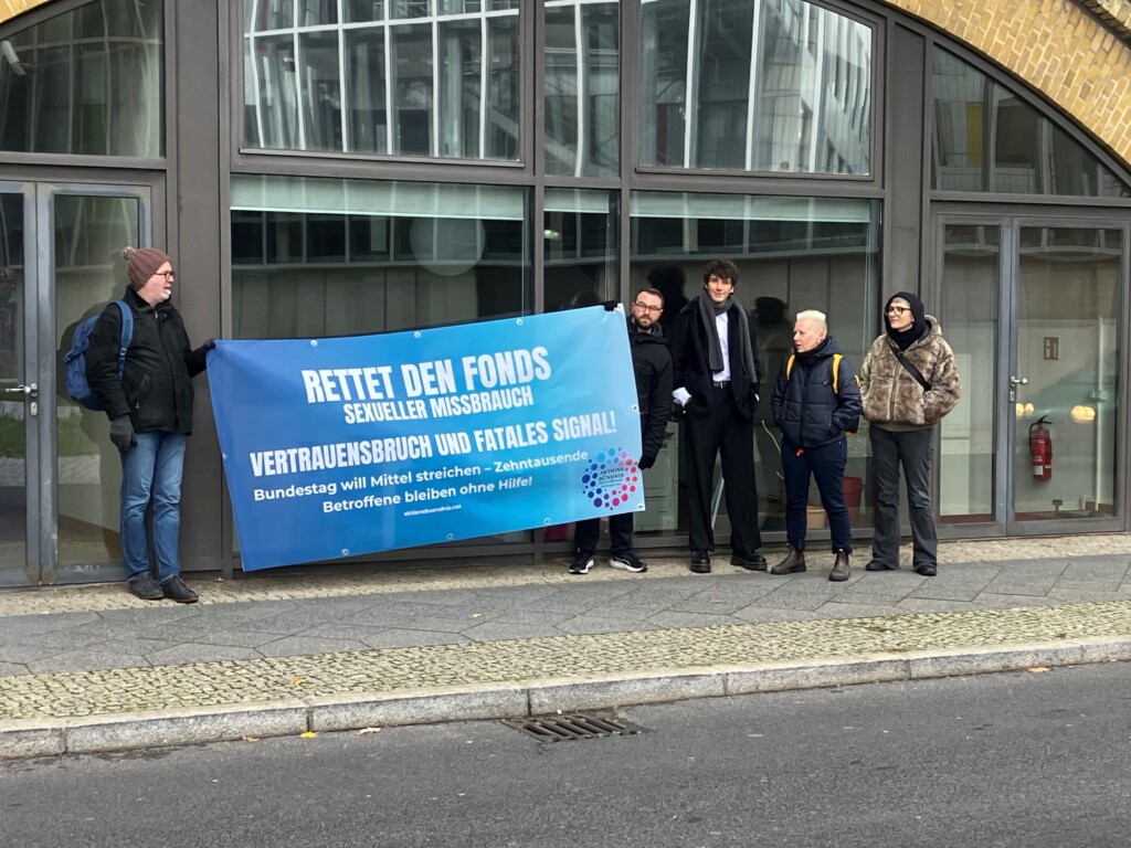 Heute, am 18. November 2025, ist der 10. Europäische Tag zum Schutz von Kindern vor sexueller Ausbeutung und sexuellem Missbrauch. Dieser wurde im Jahr 2015 vom Ministerausschuss des Europarats als Fortsetzung der ONE in FIVE-Kampagne zur Bekämpfung sexueller Gewalt gegen Kinder den 18. November zum Europäischen Tag zum Schutz von Kindern vor sexueller Ausbeutung und sexuellem Missbrauch eingeführt. (#EndChildSexualAbuseDay) Anlässlich diesen Tages forderten heute Vertreter*innen des Aktionsbündnisses der Betroffeneninitiativen und Unterstützer*innen vor dem Bundesministerium für Bildung, Familie, Senioren, Frauen und Jugend (BMBFSFJ) , dass der Fonds sexueller Missbrauch (FSM) weitergeführt wird.