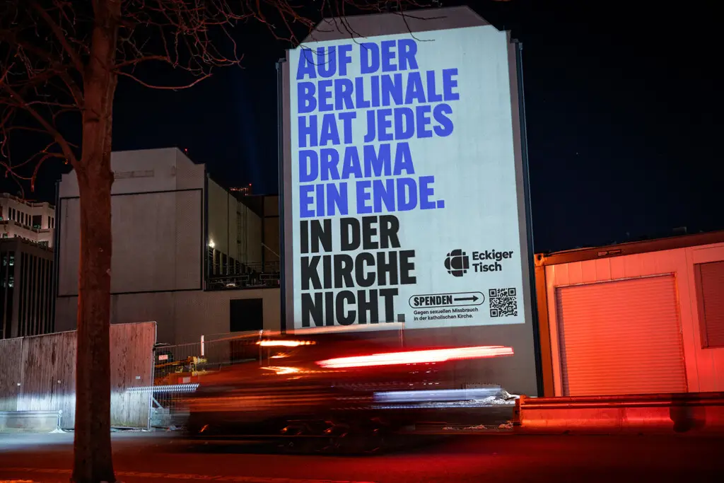 Lichtprojektionen zur Berlinale sollen ein Zeichen gegen sexuellen Missbrauch in der katholischen Kirche setzen