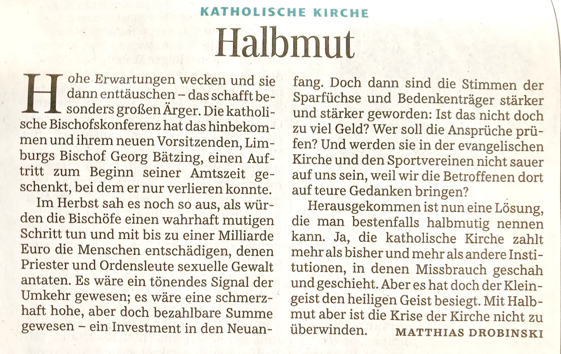 BERLINER ZEITUNG: „Der Mut der Bischöfe wurde überschätzt“