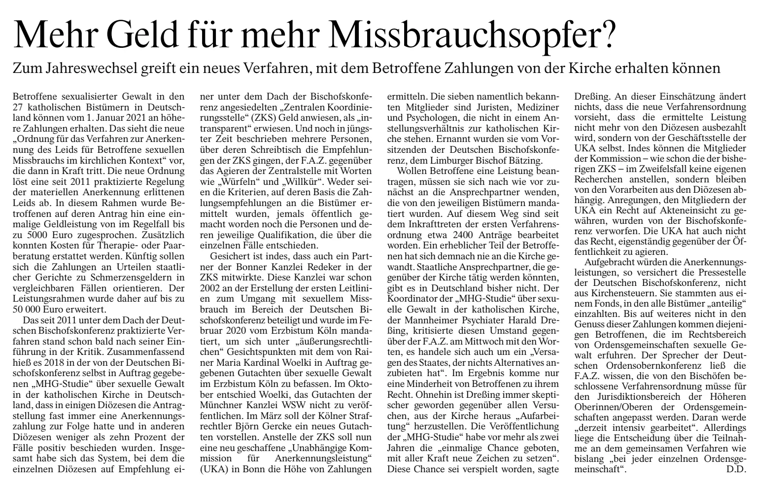 FRANKFURTER RUNDSCHAU: Katholische Kirche geht juristisch gegen Kriminologen vor