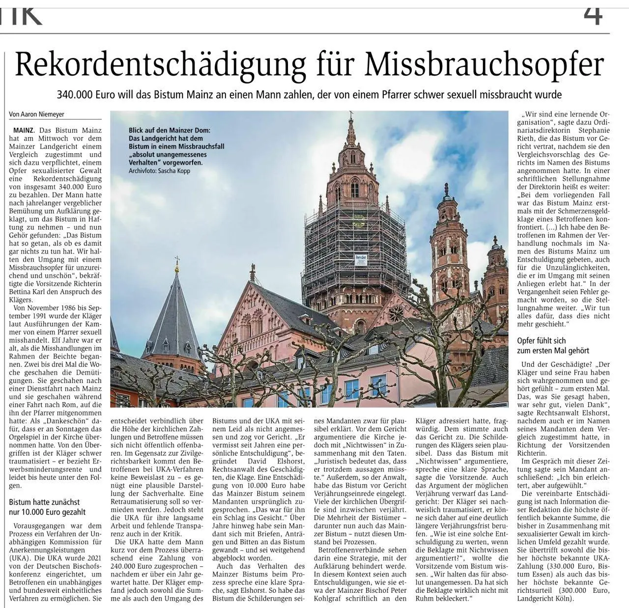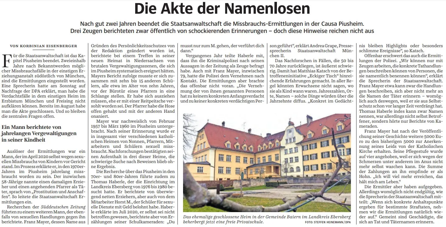 Mittelbayerische (19.02.2026): Millionen-Klage von ehemaligem Domspatz gegen das Bistum Regensburg vertagt (nur mit Abo einsehbar)